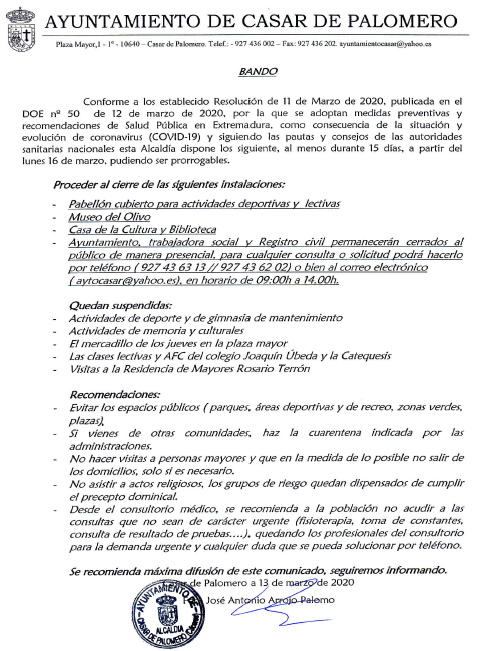 BANDO - MEDIDAS ANTE EL CORONAVIRUS -